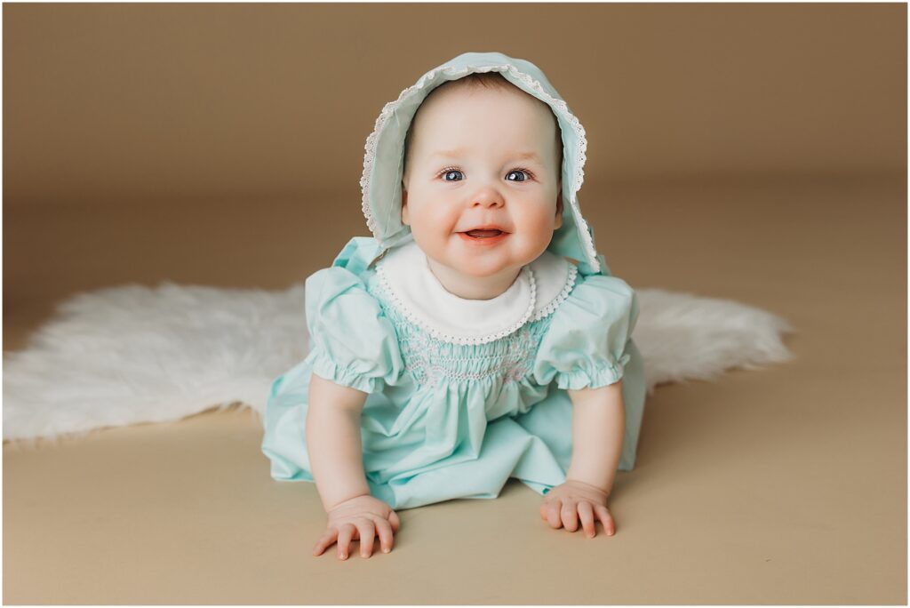 I typically recommend scheduling your Dillsburg sitter session when baby is sitting independently but not yet crawling. For most babies, that falls somewhere between six and nine months.